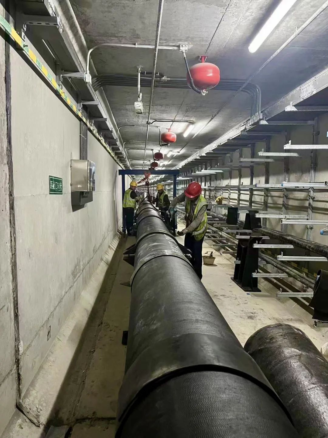 綜合管廊供水管網(wǎng)工程于今年3月份啟動,總投資700多萬元,在管廊運營管理單位和相關(guān)部門的指導下,施工單位結(jié)合實際制定施工方案、創(chuàng)新施工方法,專門定做適合地下管廊作業(yè)使用的小型龍門吊和水平運輸工具,同時上足人力,確保材料轉(zhuǎn)運入廊不受影響,從而克服了作業(yè)空間狹窄、材料轉(zhuǎn)運吊裝等困難,確保了項目安全、有序完成。進入管廊可以看到,一條直徑DN400的球墨鑄鐵管道被穩(wěn)穩(wěn)安裝固定在管廊底部基座上,管道兩端將分別與迎賓大道、編鐘大道供水主管網(wǎng)連通,管道通水后城南片區(qū)供水將形成環(huán)狀管網(wǎng),可有效緩解片區(qū)供水壓力不均衡的現(xiàn)狀,將為城南片區(qū)供水服務(wù)及后期開發(fā)建設(shè)提供堅實保障。